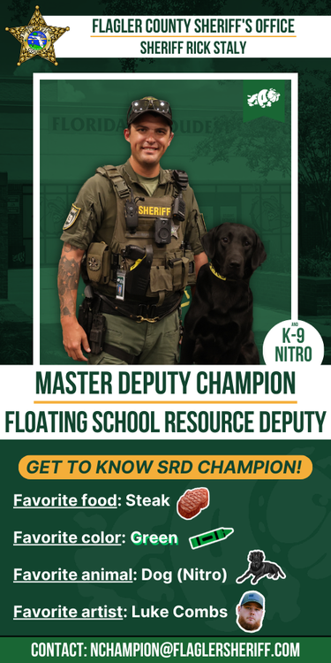 The Flagler County Sheriff’s Office is committed to working closely with Flagler Schools to keep our schools safe, provide professional service in education settings, and improve the relationship between our Deputy Sheriffs and youth in our community.